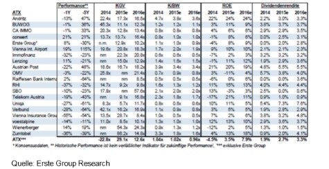 Ausblick. Aus technischer Sicht sollte der ATX kurzfristig konsolidieren, aber danach über das heutige Niveau hinaus weiter ansteigen. Asset Manager sitzen im Durchschnitt derzeit auf überhöhten Cash-Beständen - Geld das im Niedrigzinsumfeld auch wieder investiert sein will. Polytec wird diesen Dienstag die 2015er Ergebnisse vorlegen, die trotz VW solide ausgefallen sein sollten. VIG wird endgültige Zahlen berichten, hier wird besonders der Conference Call mit den Erläuterungen spannend.